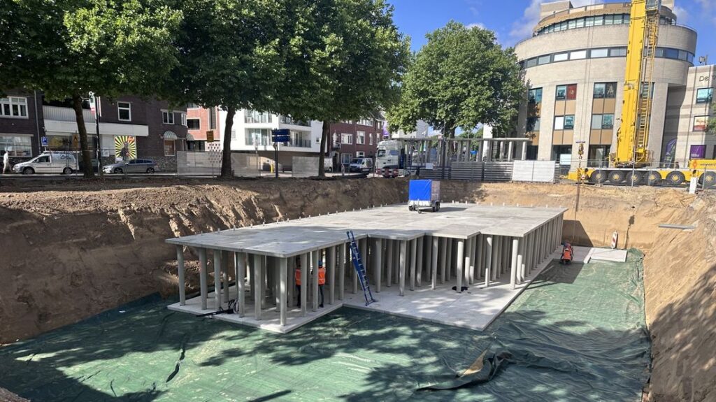 Onder het Raadhuisplein in Heerlen wordt een waterbuffer aangelegd die het regenwater opvangt in het geval van extreme buien. Het waterreservoir moet ervoor zorgen dat het riool in zulke gevallen niet overbelast raakt.